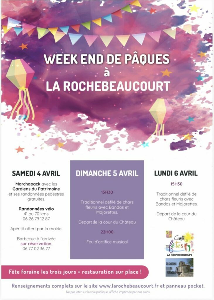 Avec sa programmation variée, ce week-end de Pâques à La Rochebeaucourt s’annonce comme un rendez-vous incontournable pour tous ceux qui aiment les fêtes populaires, les animations de village et les moments de convivialité. Entre patrimoine, traditions, musique et festivités, chacun pourra y trouver son bonheur.